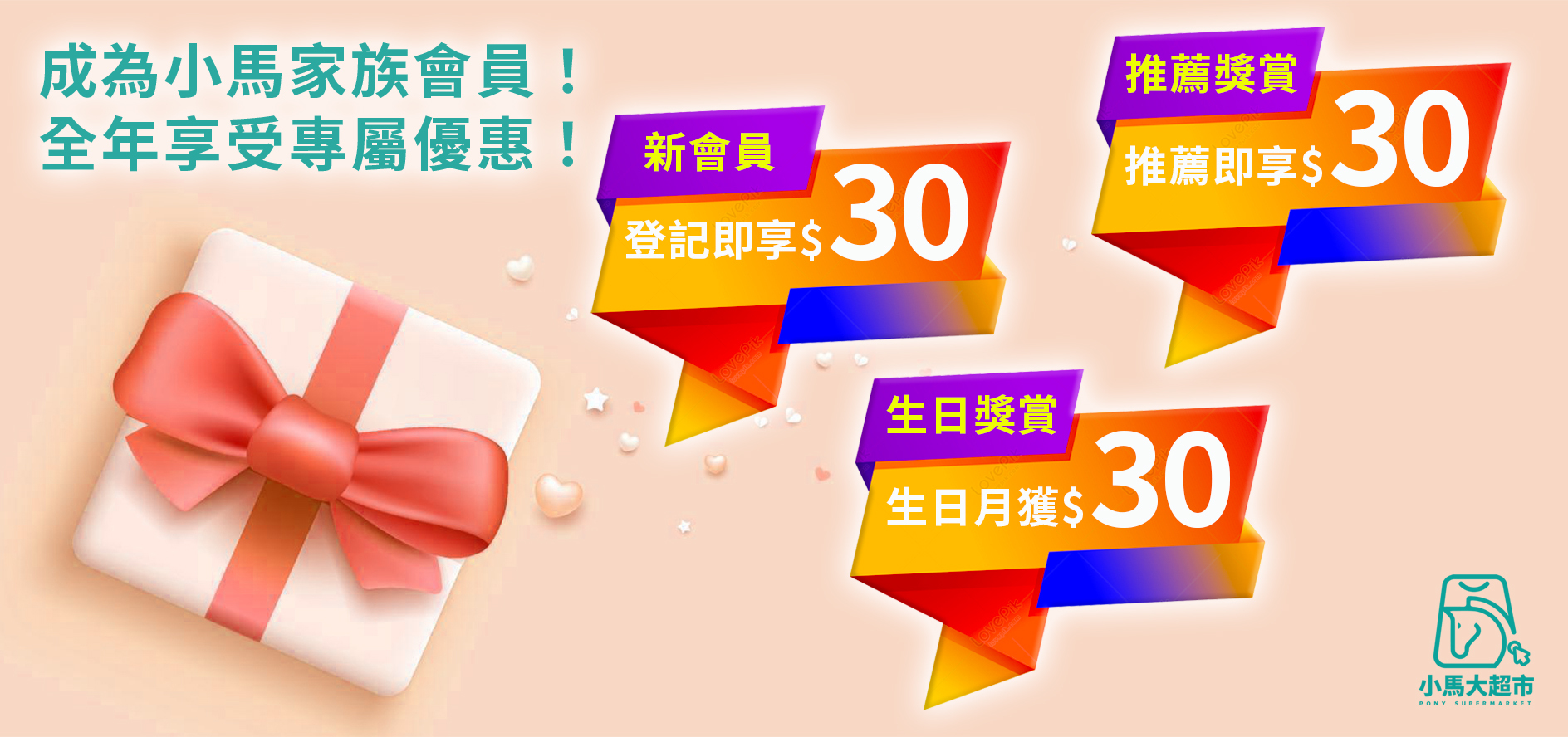 登記成為會員,新會員即享HK$30購物禮券及永久會籍。